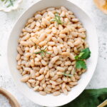 White beans are a group of legumes with white skins and starchy insides. They include navy beans, cannellini beans, great northern beans, and lima beans.